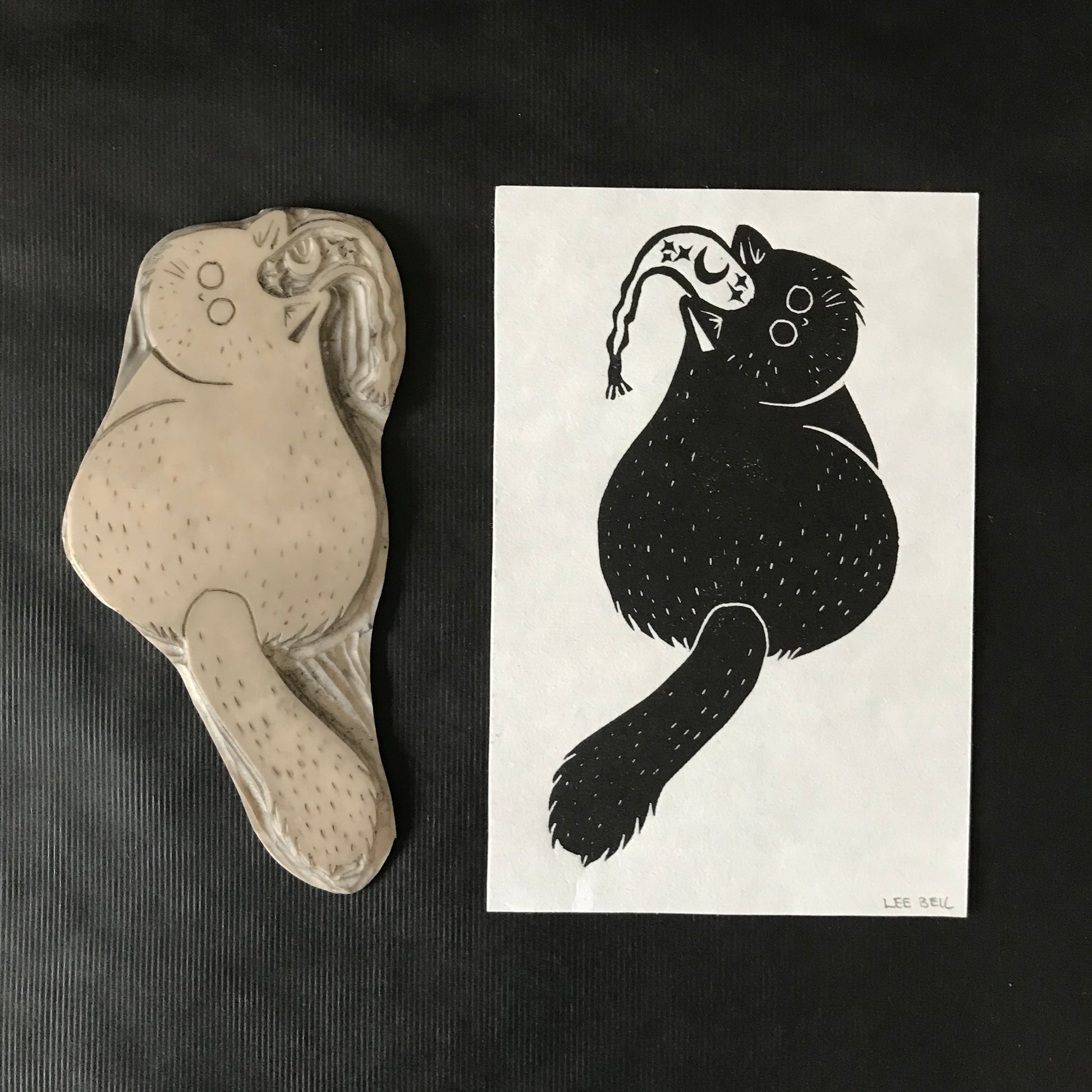 This is an original, limited edition Linocut print. I have printed them from my hand-cut design on Lino which I then ink up using oil-based Cranfield safe wash relief printing ink and transfer the image onto high-quality printing paper using my printing press.