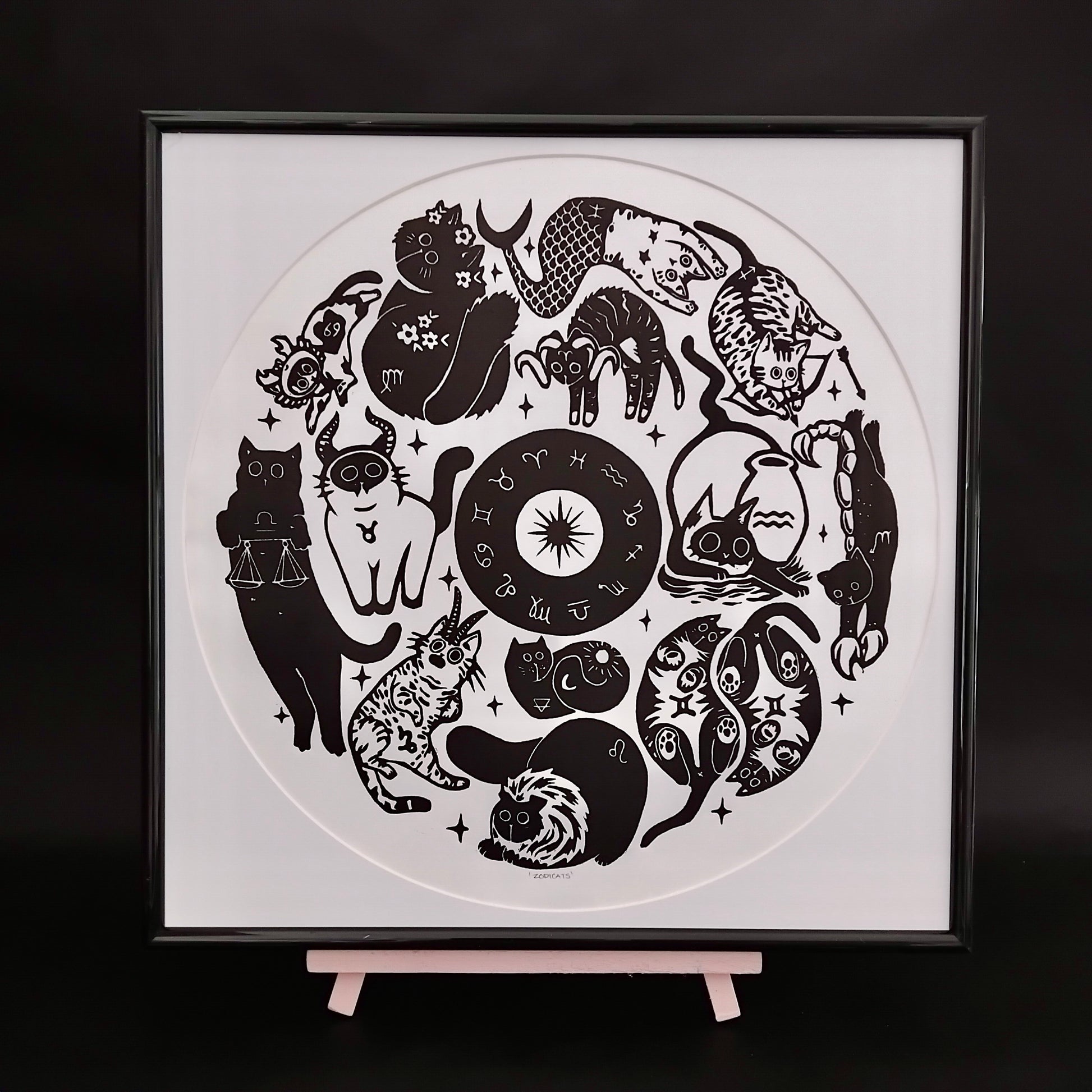 Zodicats 30x30cm Lino Art Print