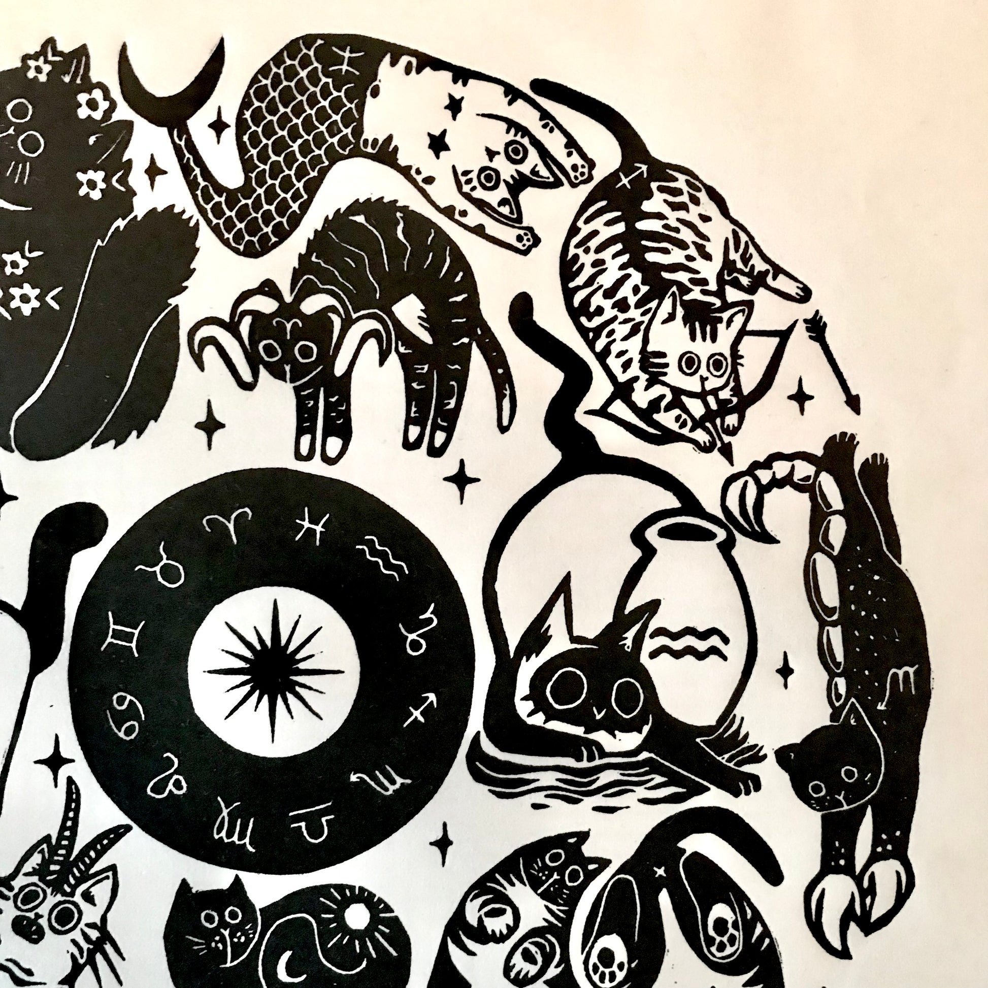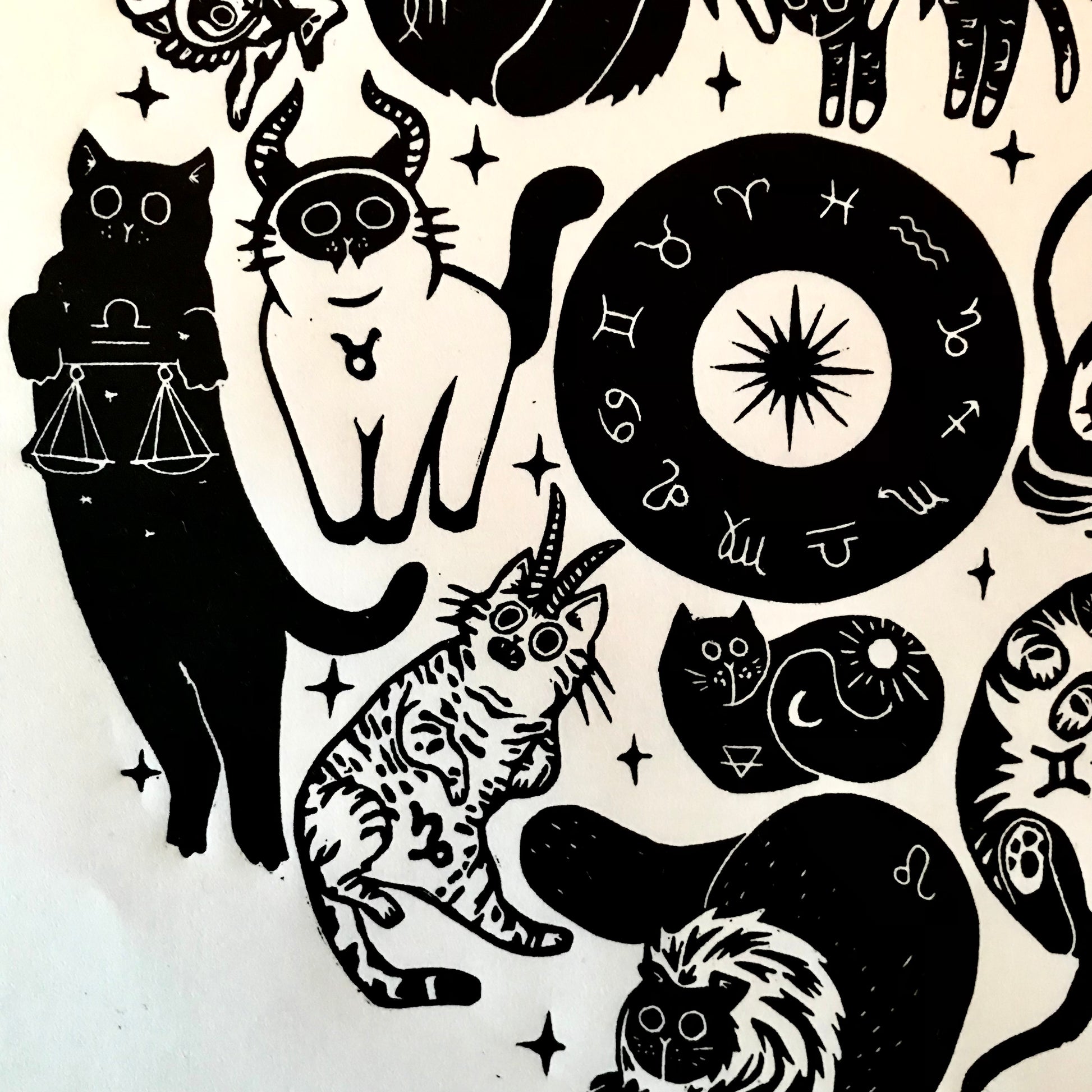 🌟 HANDMADE ZODIAC CAT LINOCUT PRINT - LIMITED EDITION 🌟